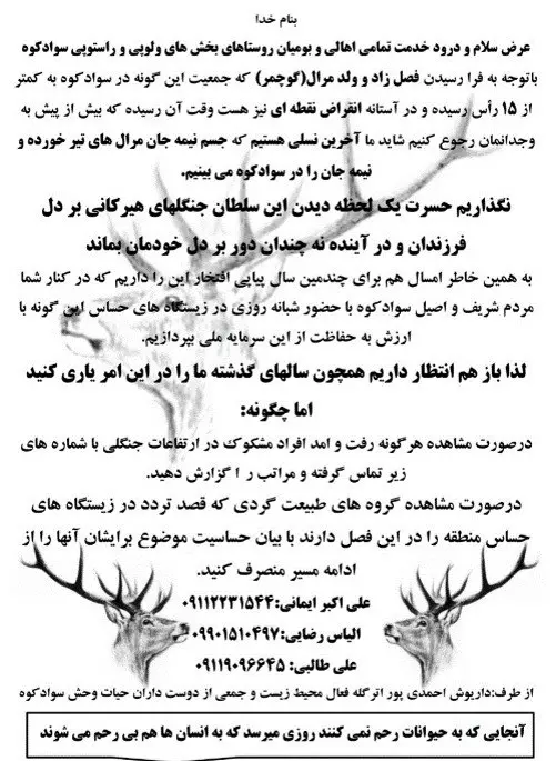 آموزش جوامع محلی در منطقه سوادکوه نقش بسیار مهمی در حفاظت از محیط زیست و پایداری اکولوژیکی منطقه ایفا کرده است. طی سالهای اخیر، با اجرای برنامههای آموزشی متنوع از جمله آموزش چهرهبهچهره بومیان، برگزاری جلسات در مساجد و اجتماعات سنتی، و دورههای ویژه برای دامداران، قرقبانان و معلمان، سطح عمومی بهطورکلی افزایش یافته است. این آموزش باعث کاهش چشمگیر حضور شکارچیان در منطقه، افزایش امنیت زیستگاههای حساس، و رشد جمعیت گونههای شاخص مرالها شده است. همچنین با تقویت مردمی، هزینههای اجرایی و حفاظتی محیطبانان کاهش یافته و زمینه برای شکلگیری نهادهای مردمی مانند «مؤسسه آوای سبز هیرکانی» فراهم شده است. در نتیجه، آموزش جوامع محلی در سوادکوه به عاملی کلیدی در حفظ تنوع زیستی و توسعه پایدار در این منطقه تبدیل شده است